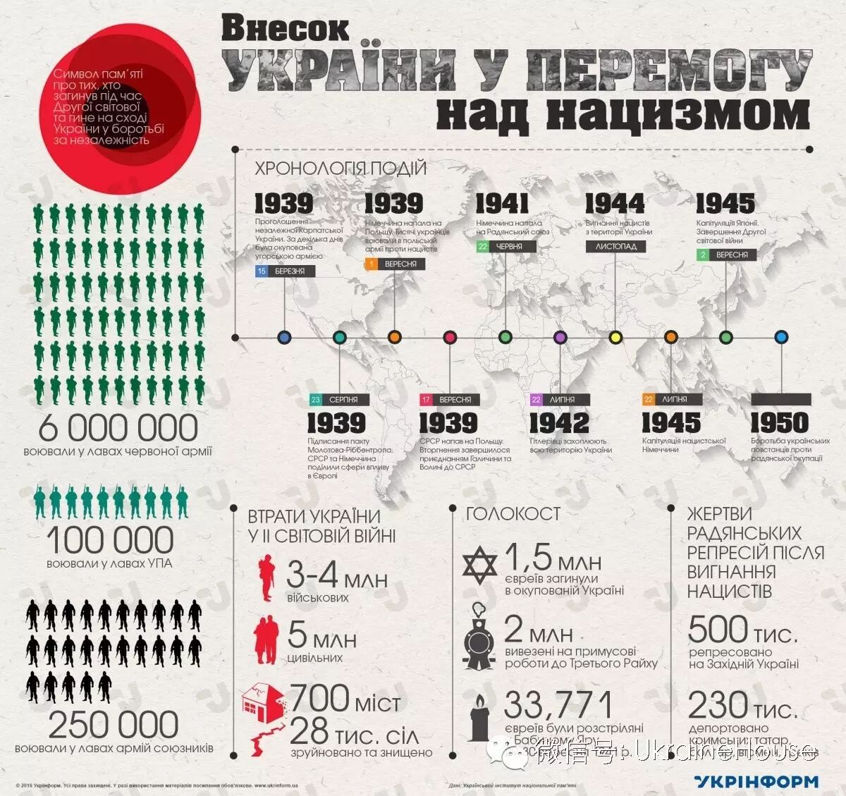 第二次世界大战中乌克兰人遭受的人员伤亡比英国、加拿大、美国和法国的总和还多。在战争中被击毙、因其它原